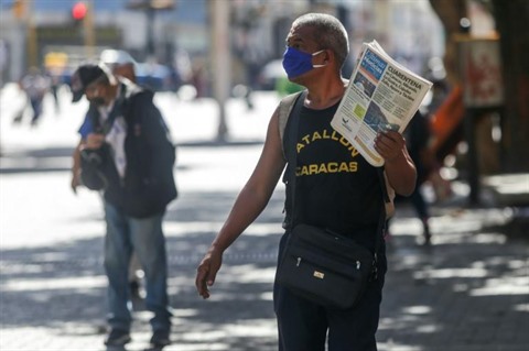 | Un vendeur de journaux à Caracas, le 16 mars. |