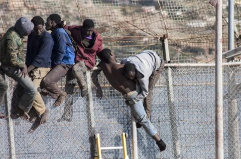 À Melilla, les plus robustes tentent d'escalader la haute barrière (six mètres) séparant le Maroc de l'Espagne, rendue tristement célèbre par une photo où l'on aperçoit des grappes de migrants perchés sur le grillage surplombant un golf verdoyant et des golfeurs semblant pratiquer ce sport dans la plus complète indifférence.