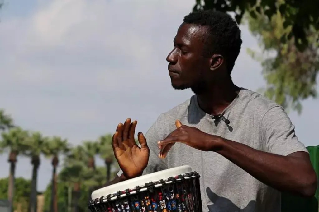 Ibrahim Kamara, un Gambien de 29 ans, est arrivé il y a cinq ans sur l'île méditerranéenne. Un matin, il voit un djembé dans un magasin, un instrument de percussion africain qui lui rappelle immédiatement son pays d'origine.