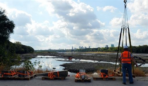 | Des archéologues extraient des objets de la Vistule, le 3 septembre à Varsovie. |