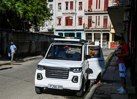 | Une voiture électrique dans une rue de La Havane, le 25 mai à Cuba. |