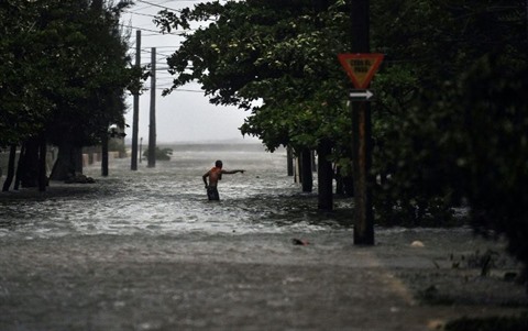 | Inondations à La Havane lors du passage de l'ouragan Irma, le 9 septembre 2017. |