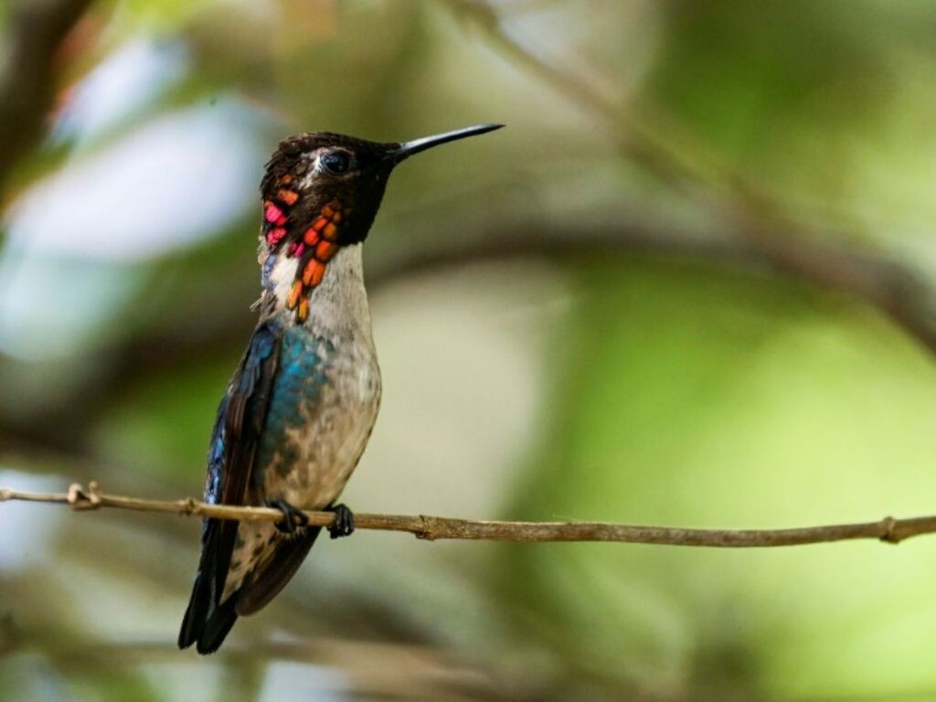 | Un oiseau-mouche perché sur une branche dans le jardin de la “Maison des colibris”, à Palpite, dans le Sud-Ouest de Cuba. |