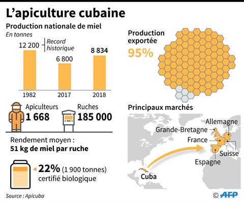 Malgré ses 8.834 tonnes de miel produites en 2018 - soit 1.300 de plus que l’objectif visé par l’Entreprise apicole cubaine (Apicuba). Cuba reste bien loin derrière l’Argentine, premier producteur d’Amérique latine avec 76.000 tonnes de miel en 2018, selon les chiffres de 2017 de l’Agence des Nations unies pour l’agriculture et l’alimentation (FAO).
