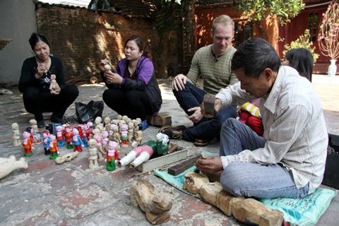 | Les villageois de Dào Thuc fabriquent eux-mêmes leurs marionnettes. |