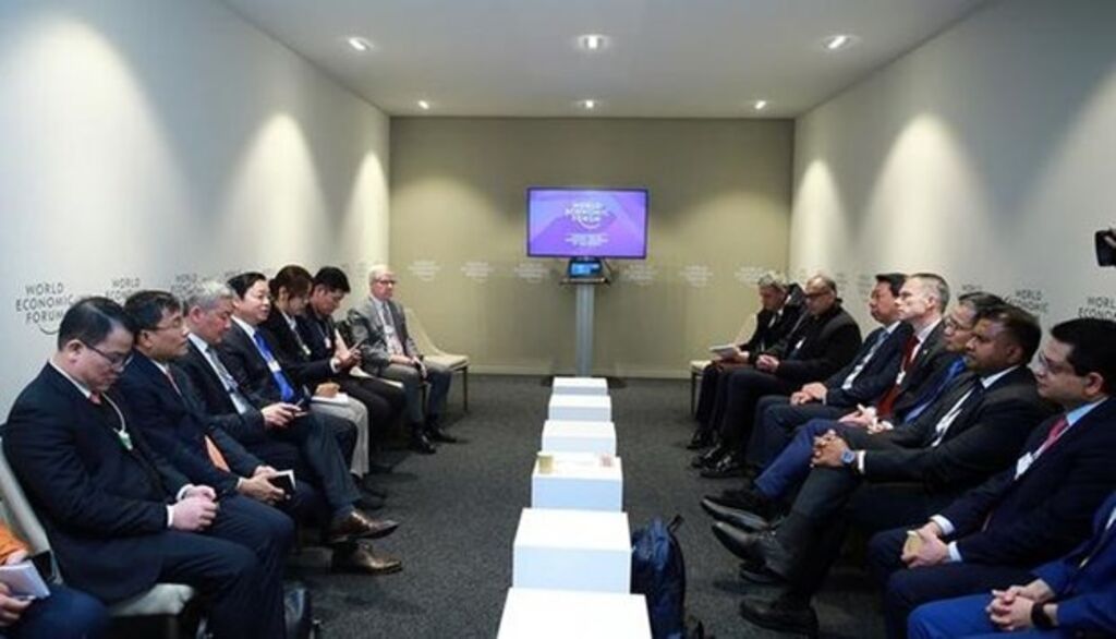 | Le vice-Premier ministre Trân Hông Hà (3e, gauche) et son homologue chinois Liu He, à Davos, le 17 janvier. |