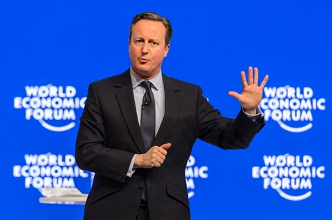 | Le Premier ministre britannique David Cameron, le 21 janvier à Davos. |