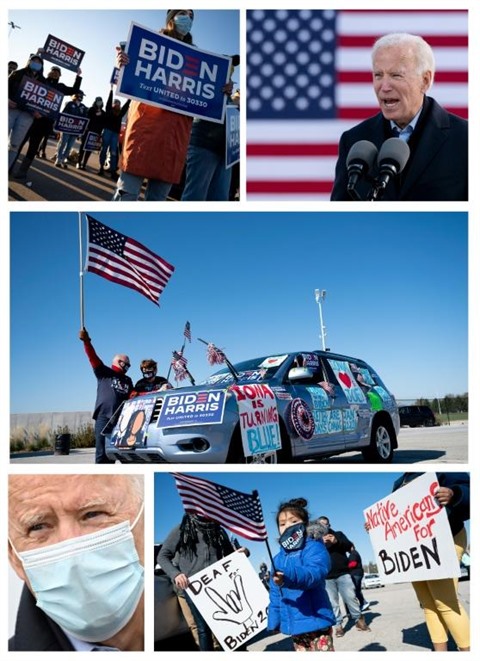 | Le candidat démocrate Joe Biden lors d'événements dans le Delaware et l'Iowa, le 30 octobre. |