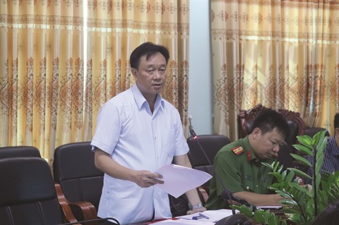 Vùi Van Nguyên (debout), président du Comité populaire du district de Muong Nhé, lors d'un point presse.