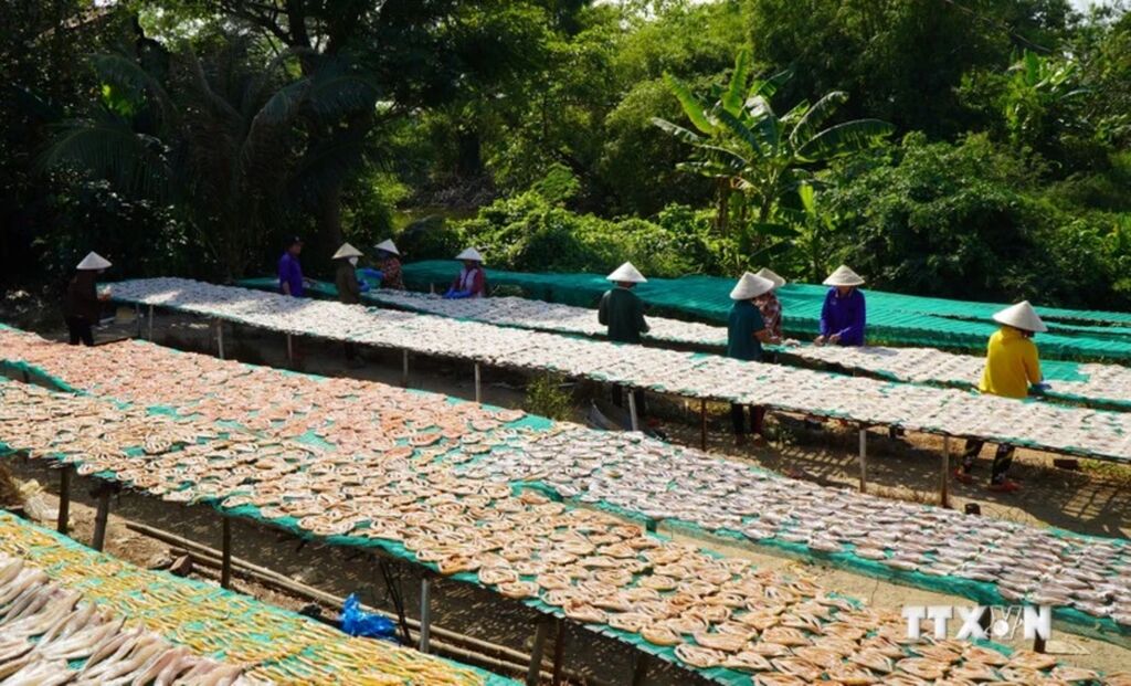 | Le séchage de poissons au soleil dans un établissement de la commune de Phu Tho, district de Tam Nông, province de Dông Thap. |