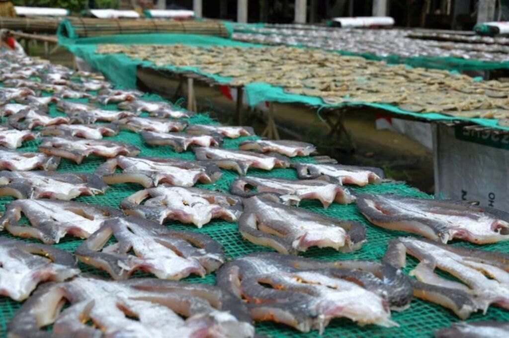 Le produit phare du marché est les têtes-de-serpent séchées. Après la capture, ce poisson subit un traitement de base: éviscération, écaillage, mise en forme, réfrigération, nettoyage final et assaisonnement avec du sel blanc, de la sauce de poisson parfumée, du piment, de la citronnelle écrasée et du curcuma pour éliminer l'odeur du poisson.