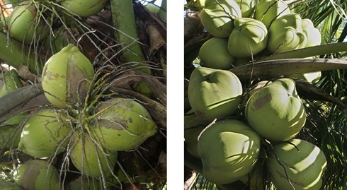 Les noix de coco vertes sont vendues comme boisson : le vendeur tranche le haut du fruit et y plante une paille. Difficile, voire dangereux, grimper aux cocotiers est un test d’endurance et d’agilité traditionnel pour les jeunes aux Fidji. Les cocotiers poussent en abondance à travers les campagnes de cet archipel du Pacifique Sud, mais aussi dans les villes. Ils sont devenus une source de revenus pour nombre de petits vendeurs, dans un pays à l’économie en berne.
