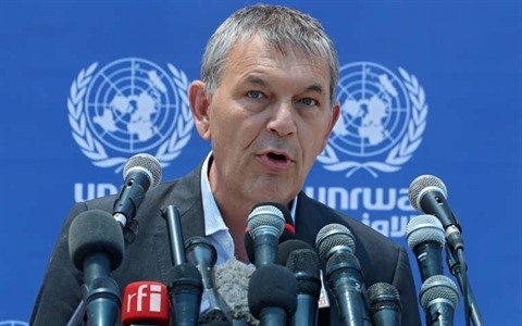| Philippe Lazzarini, chef de l'Agence de l'ONU pour les réfugiés palestiniens, s'exprime au QG de l'ONU à Gaza, le 23 mai. |