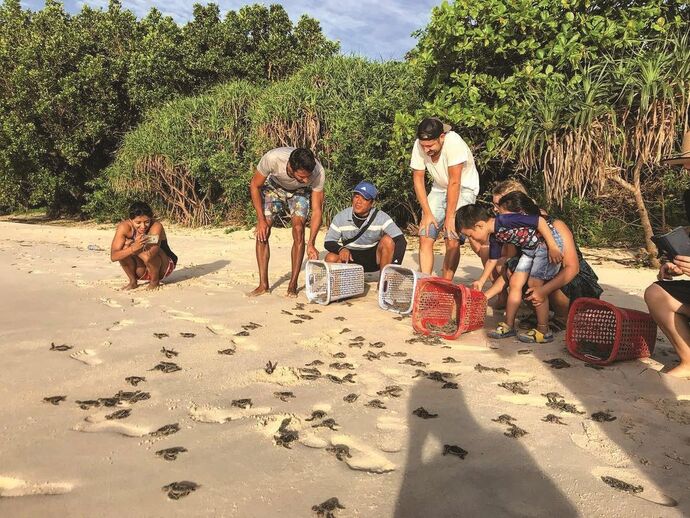 >> Les touristes jouent les sages-femmes des bébés tortues