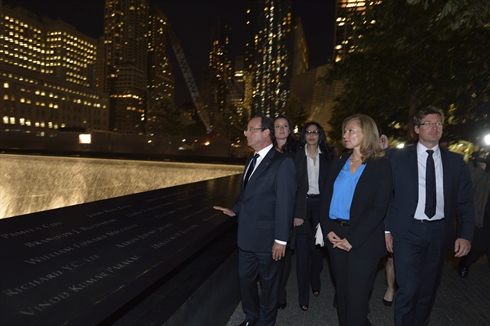 | Le président français François Hollande (1er plan, à gauce), le 25 septembre à Ground Zero (New York) |