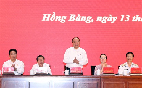 | Le Premier ministre Nguyên Xuân Phuc (debout) s’exprime lors de sa rencontre avec les électeurs de Hai Phong. |