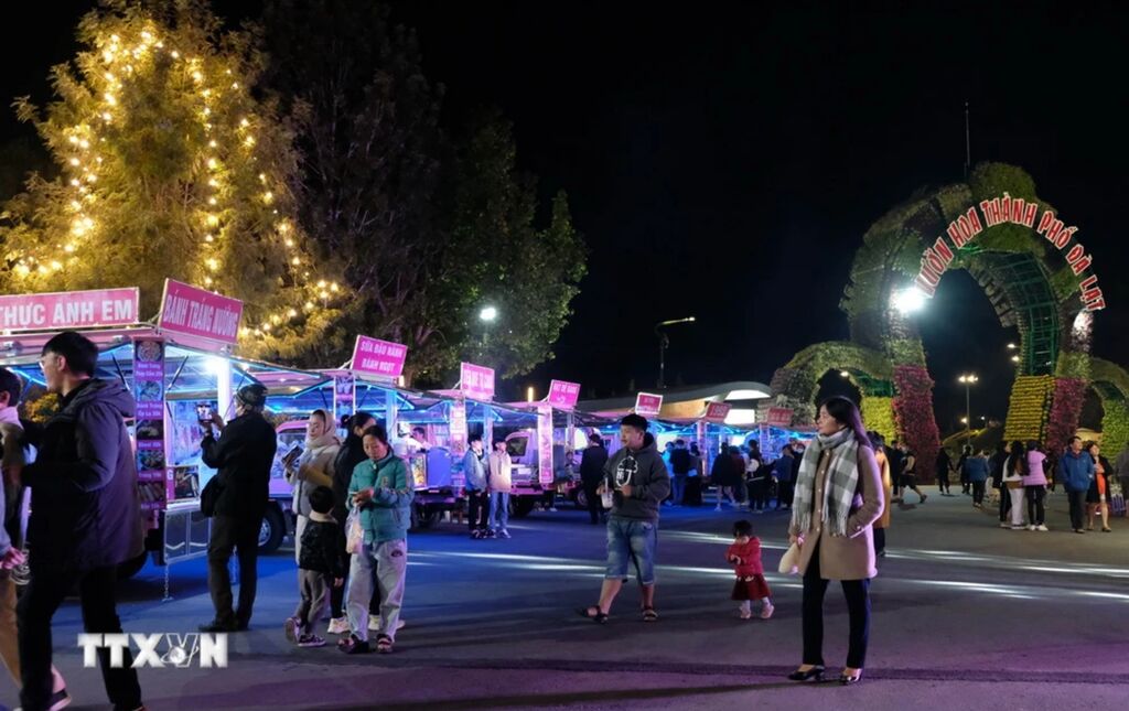 | Marché alimentaire nocturne au jardin fleuri de Dà Lat, dans la province de Lâm Dông (hauts plateaux du Centre). |