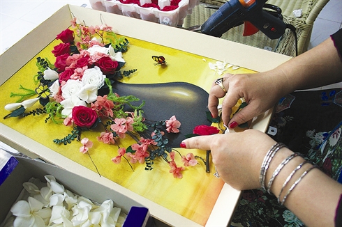 Actuellement, cette femme de 39 ans s’occupe d’une centaine d’œuvres pour honorer ses commandes et préparer une exposition lors de la Foire des fleurs du printemps 2012 à Hô Chi Minh-Ville. Diêm Chi s’occupe toujours du design et de la sélection des fleurs. Ses assistants n’interviennent que pour le collage des fleurs. «Les tableaux de grande dimension créés sur commande rapportent beaucoup, mais je conserve toujours un peu de mon temps pour créer de petites œuvres, car beaucoup de clients viennent chez moi pour chercher des souvenirs», confie-t-elle.