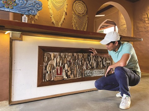 Originaire de Hôi An, Lê Ngoc Thuân, 42 ans, travaille depuis de nombreuses années dans le tourisme. Il y a quelques années, à la suite d’une campagne zéro plastique et de tourisme vert dans la ville, il a commencé à récupérer le bois flotté et les débris des ateliers de menuiserie pour en faire des sculptures et articles de décorations intérieures.