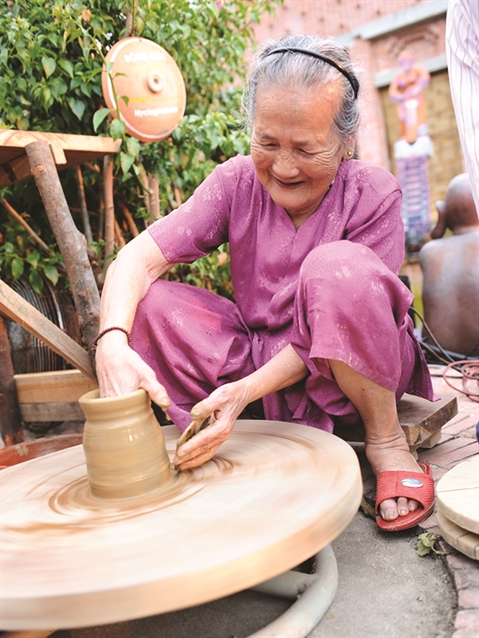 | Nguyên Thi Duoc présente aux visiteurs le savoir-faire des potiers de Thanh Hà. |