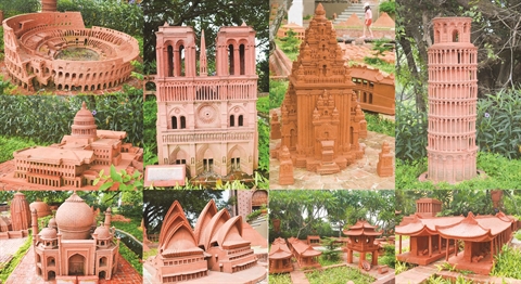 Outre les riches informations recueillies en visitant le musée des métiers de céramique du pays, il est impossible de passer à côté du jardin des patrimoines en miniature en plein air. Ici, quelques-unes des plus grands édifices de l’histoire de l’humanité sont réunies, à quelques détails près : leur taille et leur matière - la terre cuite. Parmi elles, la tour de Pise (Italie), Big Ben (Londres), l’Opéra de Sydney, Notre-Dame de Paris, la Maison Blanche (États-Unis), le Taj Mahal (Inde), les grandes pyramides (Égypte), le Colisée (Rome), l’Arc de Triomphe (Paris), le Vatican, etc. Le Vietnam occupe également une bonne place avec la citadelle impériale de Huê, le sanctuaire de My Son, le Vieux quartier de Hôi An, le Temple de la Littérature, etc.