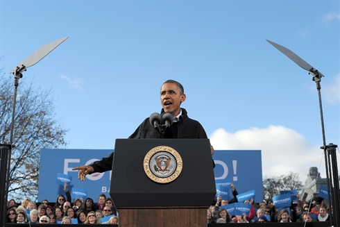 De son côté, Barack Obama poursuivait le 4 novembre sa course effrénée, avec 8.000 km au programme pour cinq États en 20 heures. Tôt le matin, il a grimpé dans Air Force One direction le New Hampshire, seul État d'un Nord-Est largement acquis aux démocrates que M. Romney peut espérer mettre dans son escarcelle.