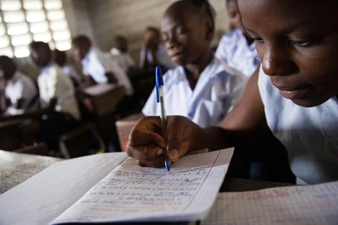 | Une élève dans une salle de classe le 7 septembre à Kinshasa. |