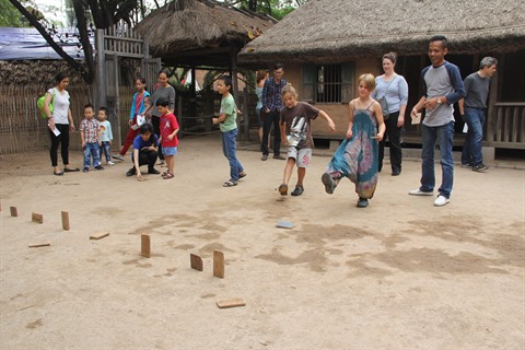 | Les enfants s’en sont donnés à cœur joie avec les jeux traditionnels proposés au Musée d’ethnographie du Vietnam, à Hanoï. |