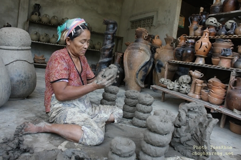 Un autre trait particulier des céramiques des Cham : le modelage est confié seulement aux femmes. La seule tâche revenant alors aux hommes est le prélèvement de l’argile à la rivière, et la cuisson. En effet, la légende des Cham raconte que le couple de génies PoKlong Chanh avait transmis ce métier aux femmes il y a plusieurs milliers d’années.
