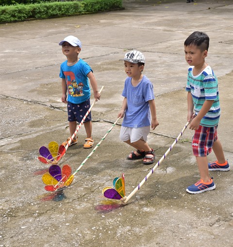 | Beaucoup d'enfants vietnamiens sont séduits par les jouets populaires. |