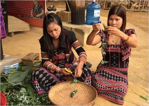 À cette occasion, les femmes Tà Ôi présentent aux visiteurs la préparation du gâteau Akoat ou gâteau de l’amour. Ce dernier est fait en "nêp than", une sorte de riz gluant spécial. Le gâteau Akoat n’a pas de garniture. Il est habituellement mangé avec de la viande de poulet ou un mélange de sel, de sésames et de cacahuètes grillées et pillées. C’est un plat indispensable pour les mariages et les fêtes de l’ethnie Tà Ôi parce qu’il est symbole de bonheur, de prospérité et d’esprit de solidarité pour surmonter les difficultés. "Le gâteau Akoat est délicieux grâce à la bonne odeur des feuilles de roseaux à balais", insiste Hô Thi Nhât.