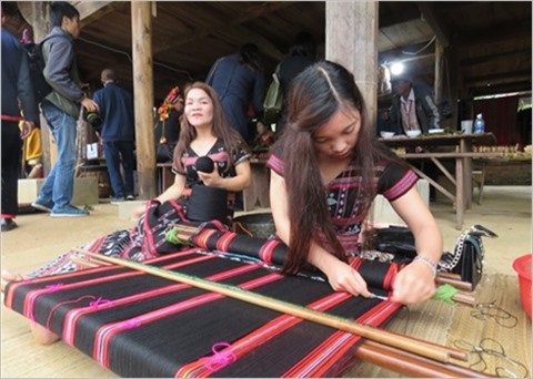 | Les femmes Tà Ôi présentent les techniques de Dèng aux visiteurs. |