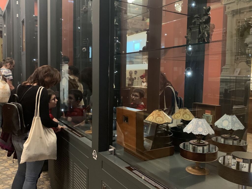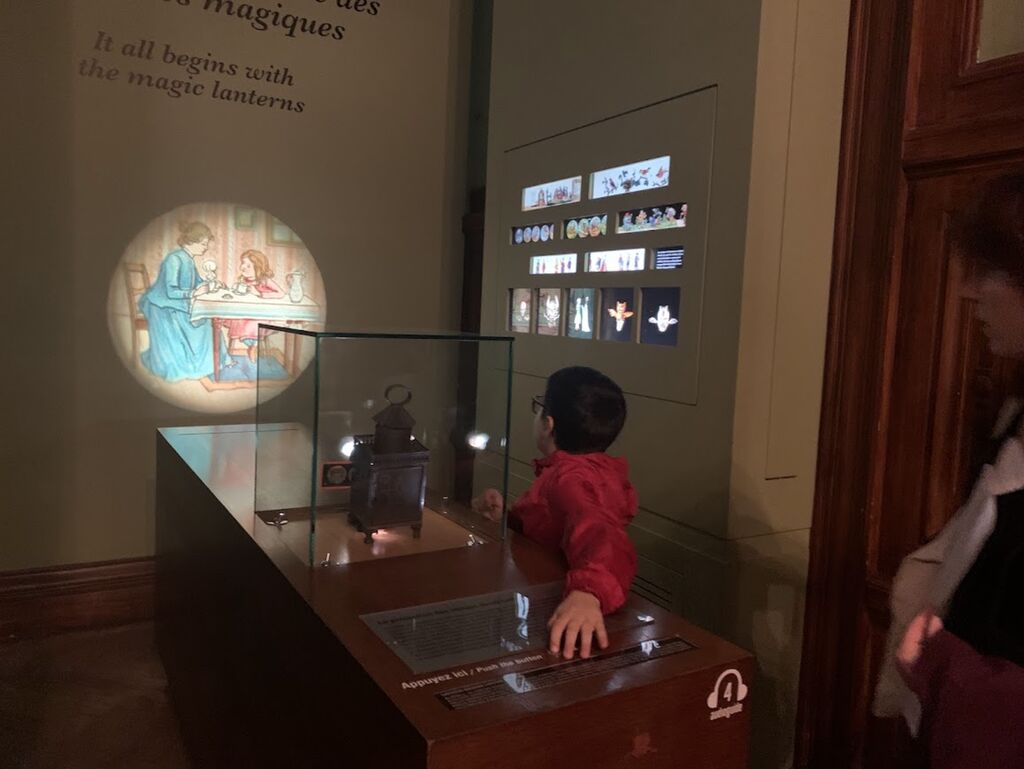 | Un petit garçon séduit par une lanterne magique au musée Lumière. |