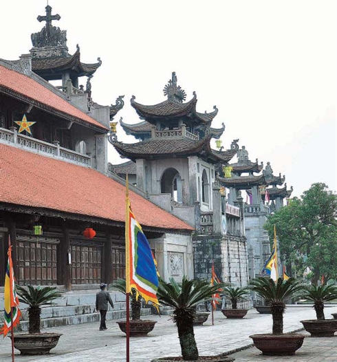 | L’architecture de la cathédrale Phat Diêm est inspirée des pagodes et maisons communales du Vietnam. |