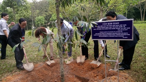 À cette occasion, les participants ont visité et allumé des bâtonnets d’encens au Temple des rois Hùng, et ont planté un arbre dans le jardin de ce site.