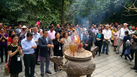 | Les délégués en visite du Temple des rois Hùng, le 3 mars à Phu Tho (Nord). |