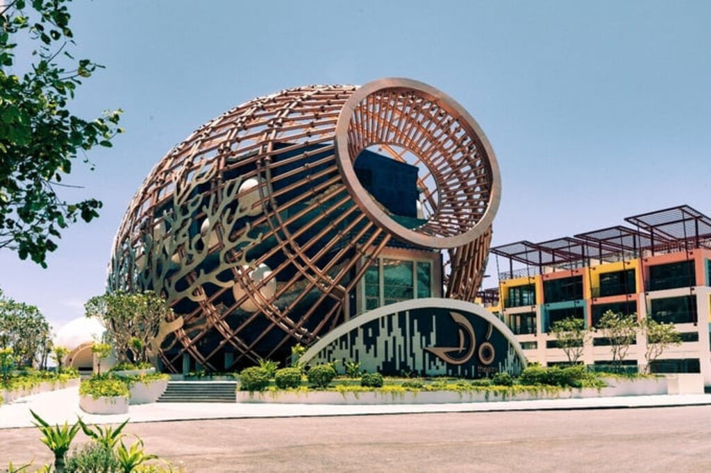 Inauguré en avril 2023, c’est un lieu d’une superficie totale de 2.500 m2 qui mesure environ 20 m de haut. Les motifs décoratifs extérieurs représentent des branches de corail mélangés de perles.