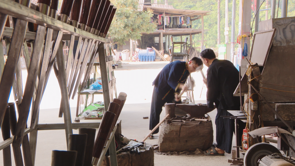 Une particularité de ce village est que contrairement aux gens de la plaine qui ont l'habitude de façonner leurs couteaux en commençant par le manche, les Nùng An font exactement l'inverse. Ce n'est qu'après avoir obtenu une lame conforme à leurs désirs qu'ils s'attaquent au manche. Si la forme du manche peut être corrigée, ce n'est pas le cas pour la lame.