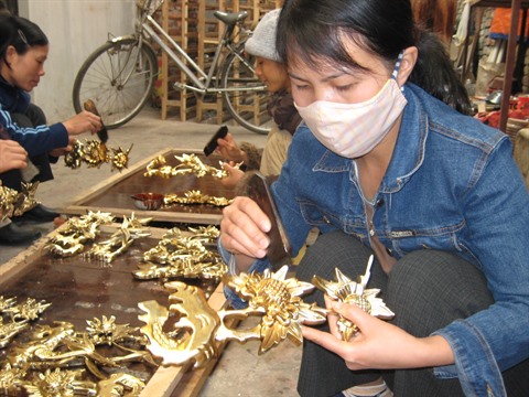 | Au village de Son Dông, on fabrique des objets de culte en bois laqué. |