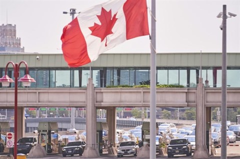 Au poste frontalier de Peache Arch, entre le Canada et les États-Unis à Surrey, en Colombie-Britannique, au Canada, le 9 août. Photo : Xinhua/VNA/CVN |