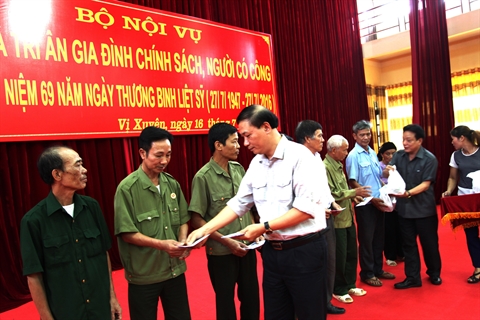 À l'occasion du 69e anniversaire de la Journée des invalides de guerre et des morts pour la Patrie, une délégation du ministère de l’Intérieur s'est rendue, les 16 et 17 juillet, au district de Vi Xuyên, province de Hà Giang (Nord), et a remis des cadeaux à des familles méritantes.