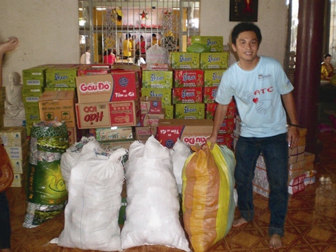 | Les élèves de la pagode sont devenus des volontaires lors des campagnes de secours organisées pour les habitants victimes des inondations |
