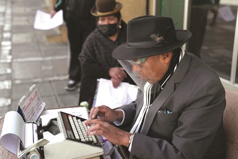 Depuis 1985, l'homme de 61 ans, costume et chapeau élégants, s’installe aux premières heures de la journée devant sa machine à écrire, une Brother modèle 1974, dans une rue animée de la capitale bolivienne. "Des impôts, comme la déclaration d’héritiers, ou d’autres formulaires sont encore tapés à la machine car ils ne sont pas disponibles sur Internet", explique l’écrivain public, visière en plastique sur le visage pour se protéger du COVID-19.