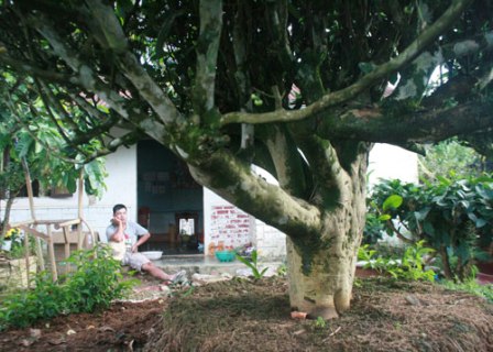 | Un vieux théier dans le jardin de Pham Van Kiêt, à Lôc An, province de Lâm Dông (hauts plateaux du Centre). |