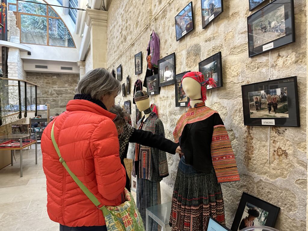 | Exposition de costumes ethniques et d’ao dài vietnamiens à Saintes. |
