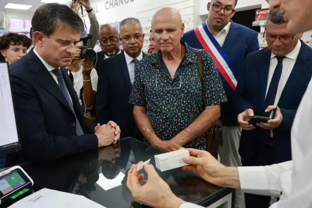 | Le ministre des Outre-mer Manuel Valls lance la campagne de vaccination contre le chikungunya le 7 avril à L'Étang-Salé, à La Réunion. |