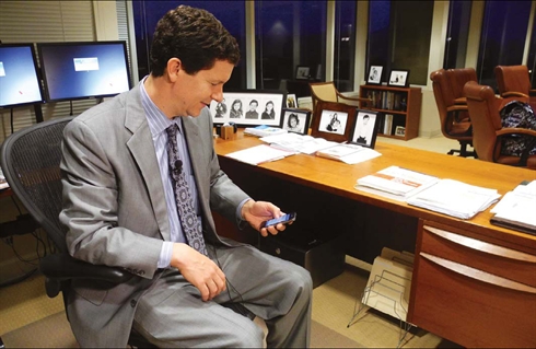 | Robert Musslewhite, CEO d’Advisory Board Company, avec son smartphone au bureau à Washington, DC. |