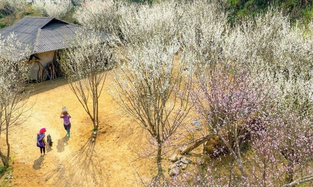 À environ 16 km au Nord-Ouest de Bac Hà, dans la province de Lào Cai, la commune de Ta Van Chu est magnifique en ce moment avec l’éclatante floraison des pruniers, offrant une vue toute blanche.