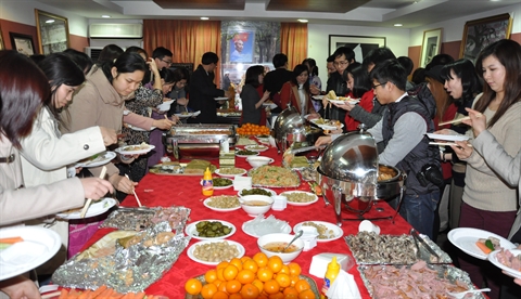 | Des Vietnamiens résidant en République de Corée se réunissent à un banquet du Têt traditionnel à l’ambassade du Vietnam. |