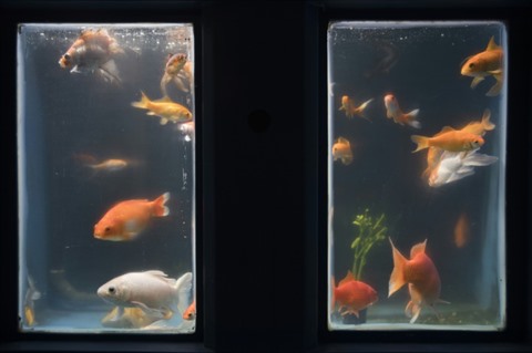 | Poissons rouges abandonnés, placés en quarantaine à l'Aquarium de Paris. |